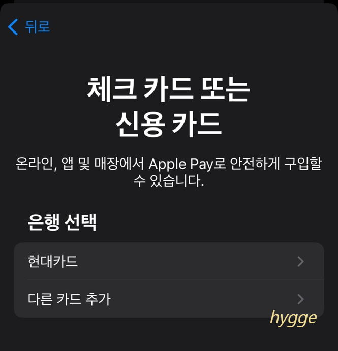 애플페이 카드추가하는 메뉴로 바로 이동해요.